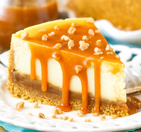 - Preceding to delivery, pour 1/2 a cup of the remaining sugar sauce over the cheesecake and shower with whatsoever candy bits. Deliver cheesecake slices with the remaining cup of chromatic sauce, for drizzling.